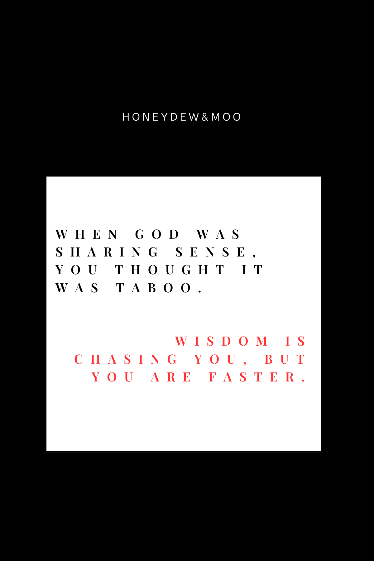 Text: When God was sharing sense, you thought it was taboo. - Wisdom is chasing you, but you are faster.