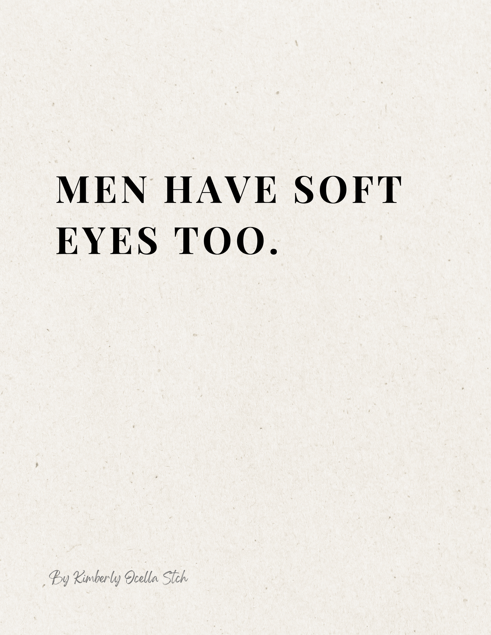 Text: Men have soft eyes too.