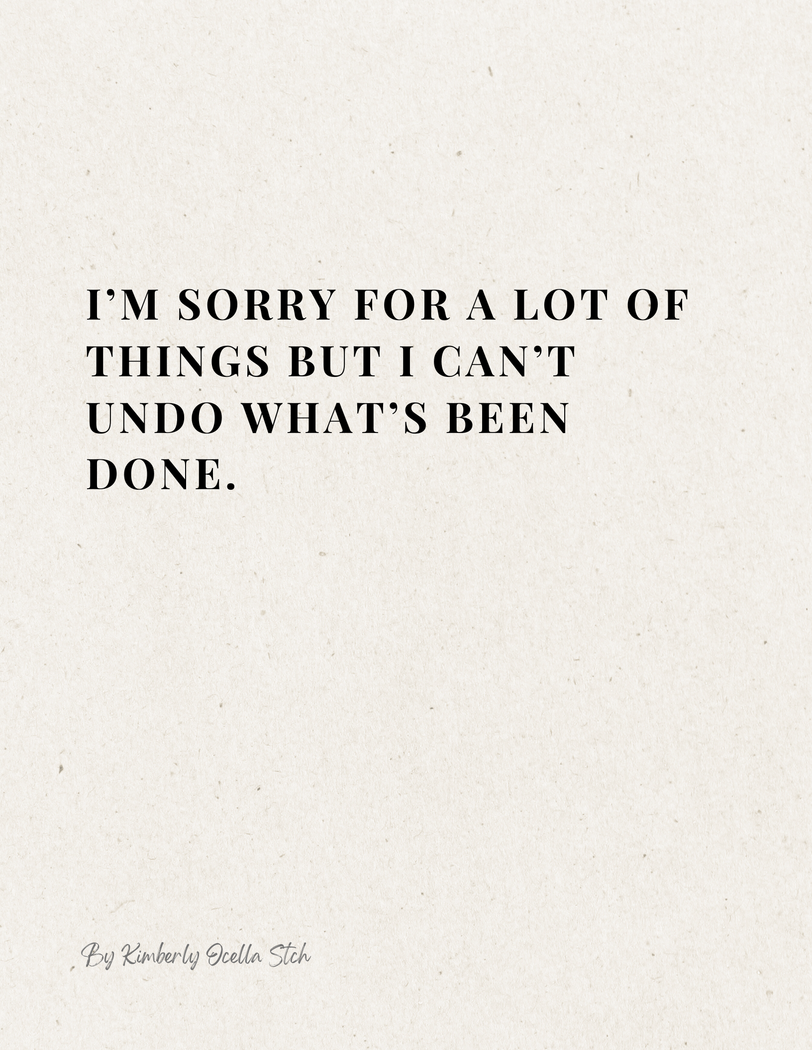 Text: I'm sorry for a lot of things but I cannot undo what's been done.