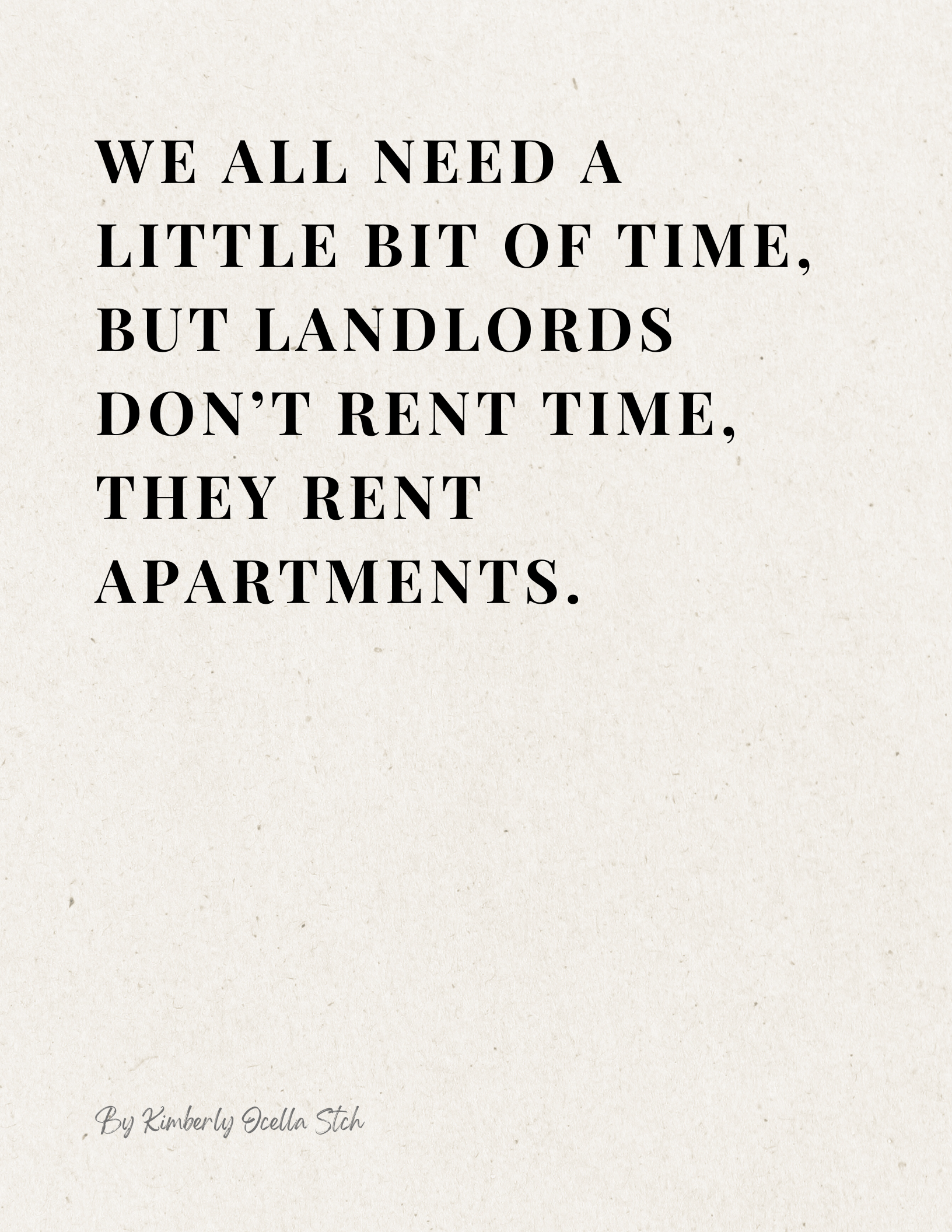 Text: We all need a little bit of time, but landlords don’t rent time, they rent apartments.