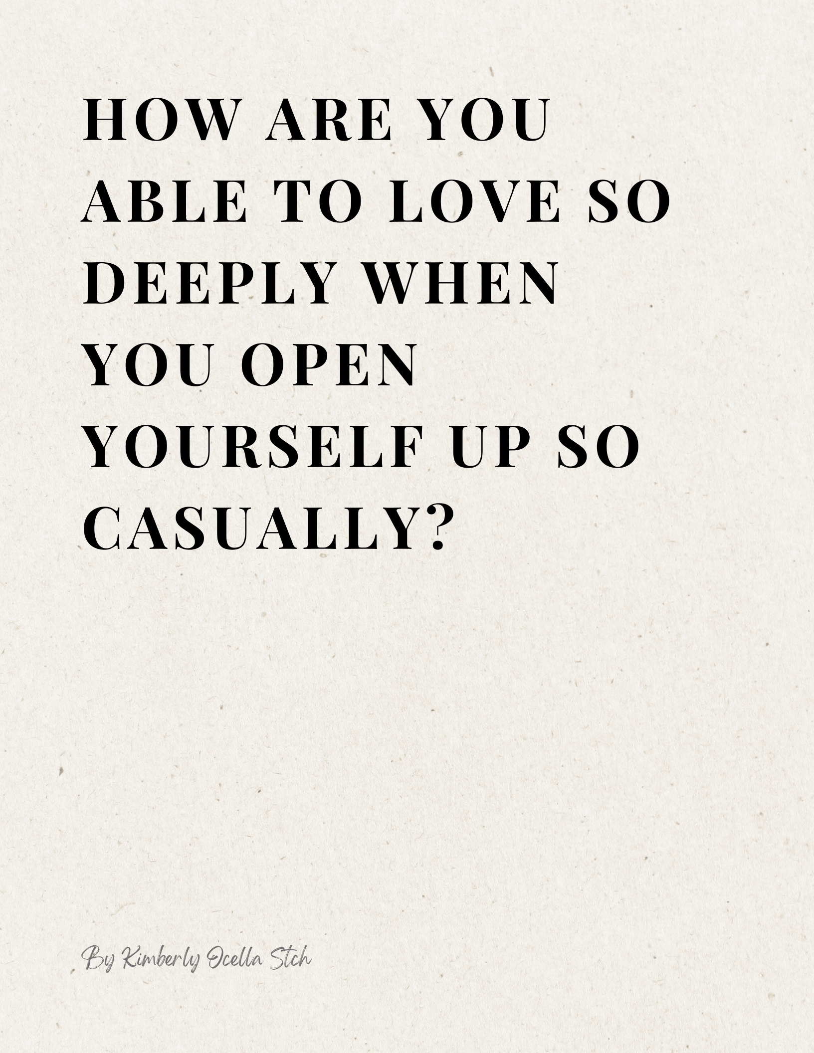 Text: How are you able to love so deeply when you open yourself up so casually?