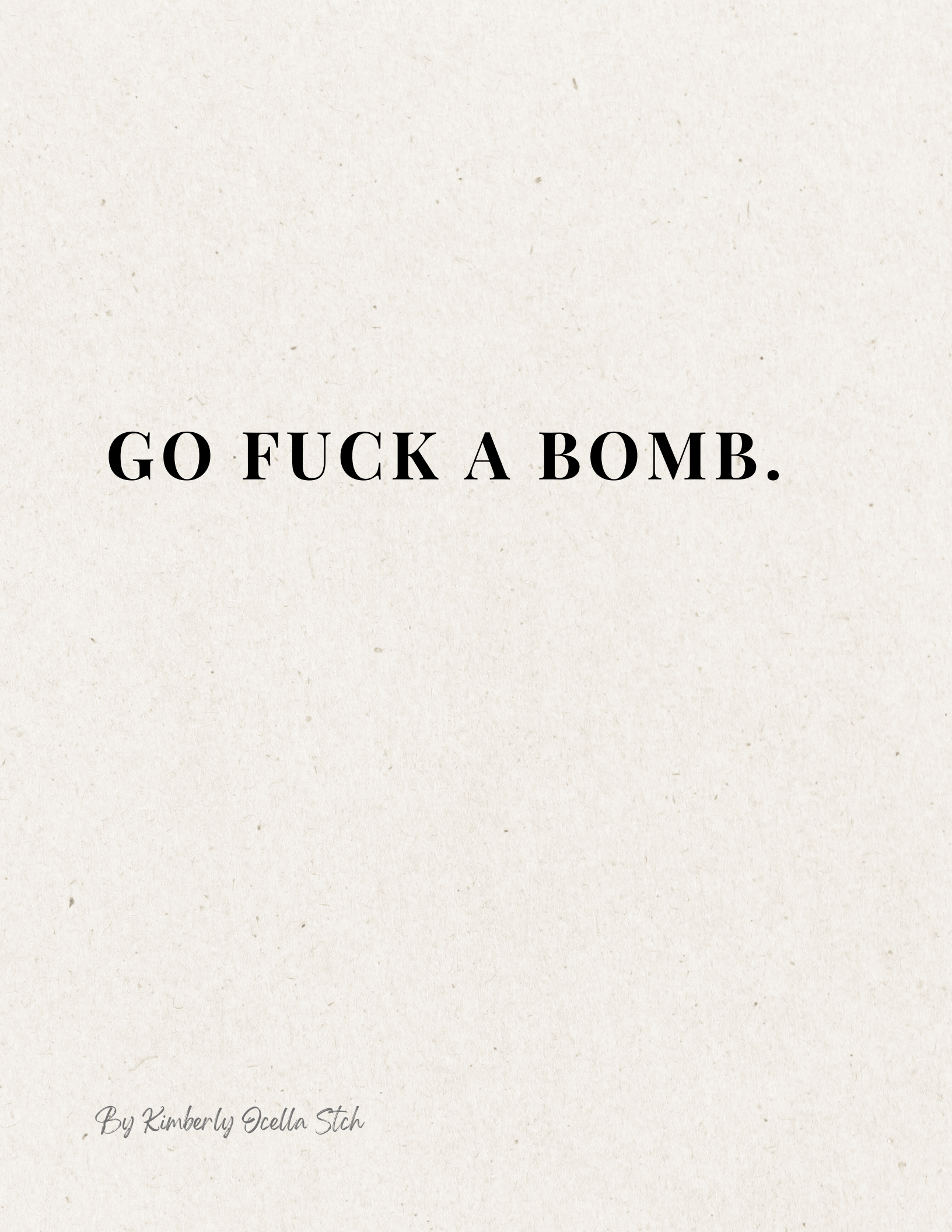 Text: Go fuck a bomb.