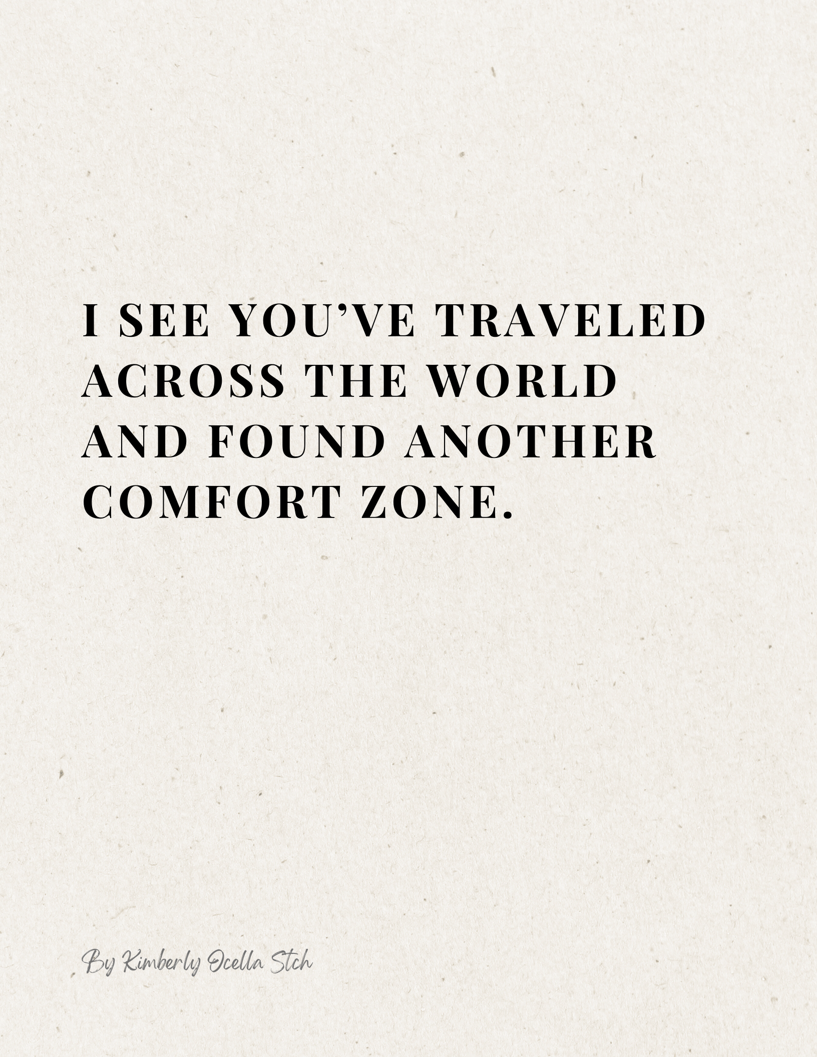 Text: I see you’ve traveled across the world and found another comfort zone.