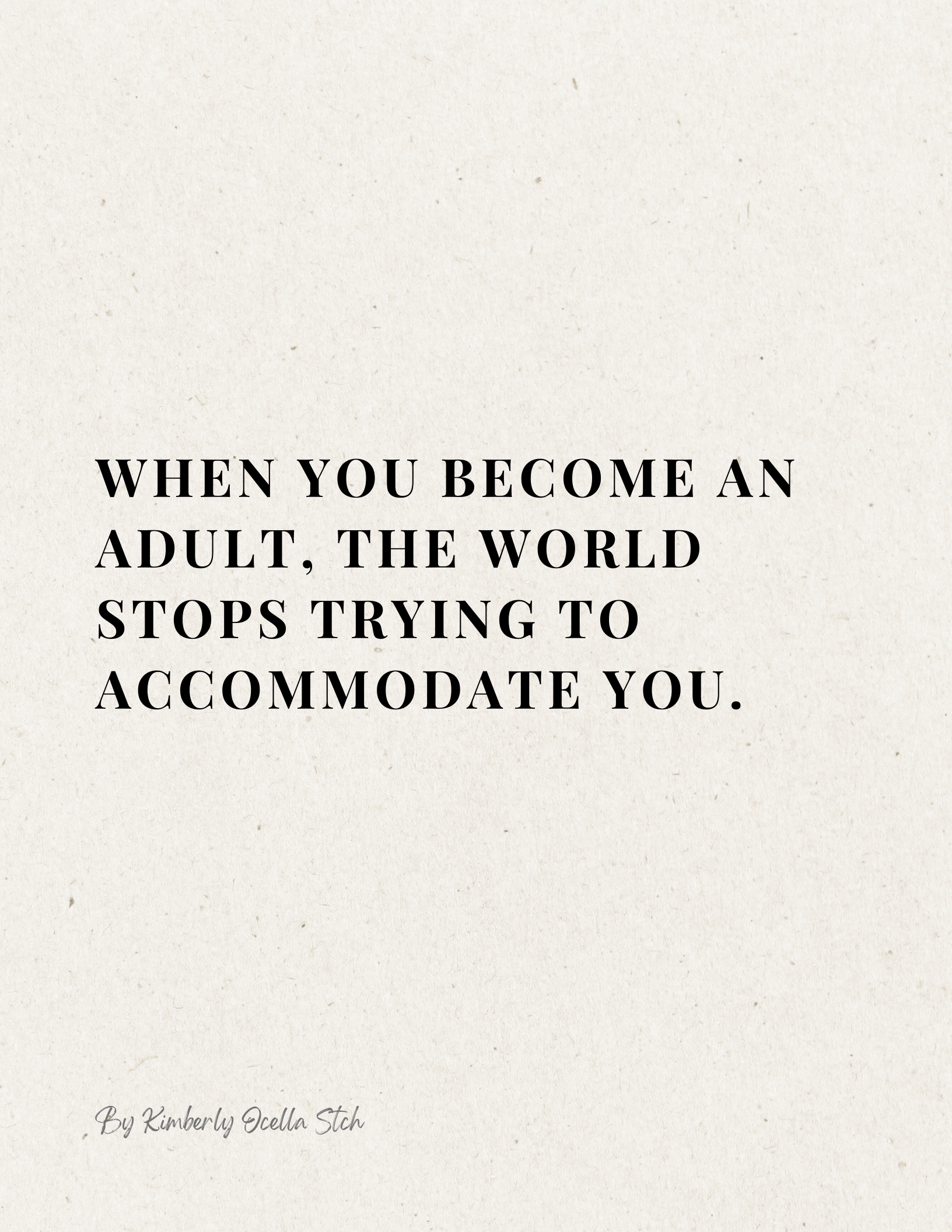 Text: When you become an adult, the world stops trying to accommodate you.