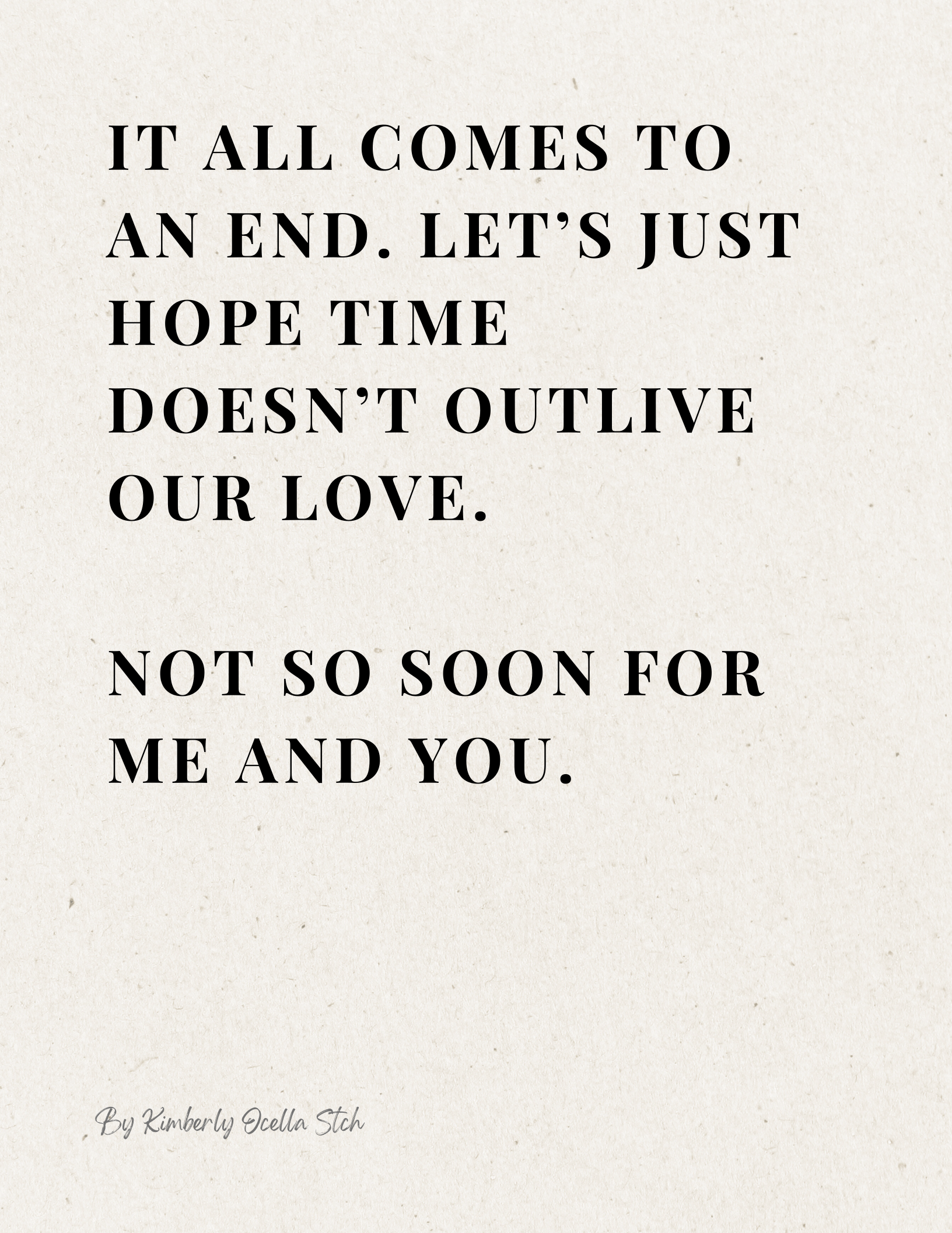 Text: It all comes to an end. Let’s just hope time doesn’t outlive our love. Not so soon for me and you.