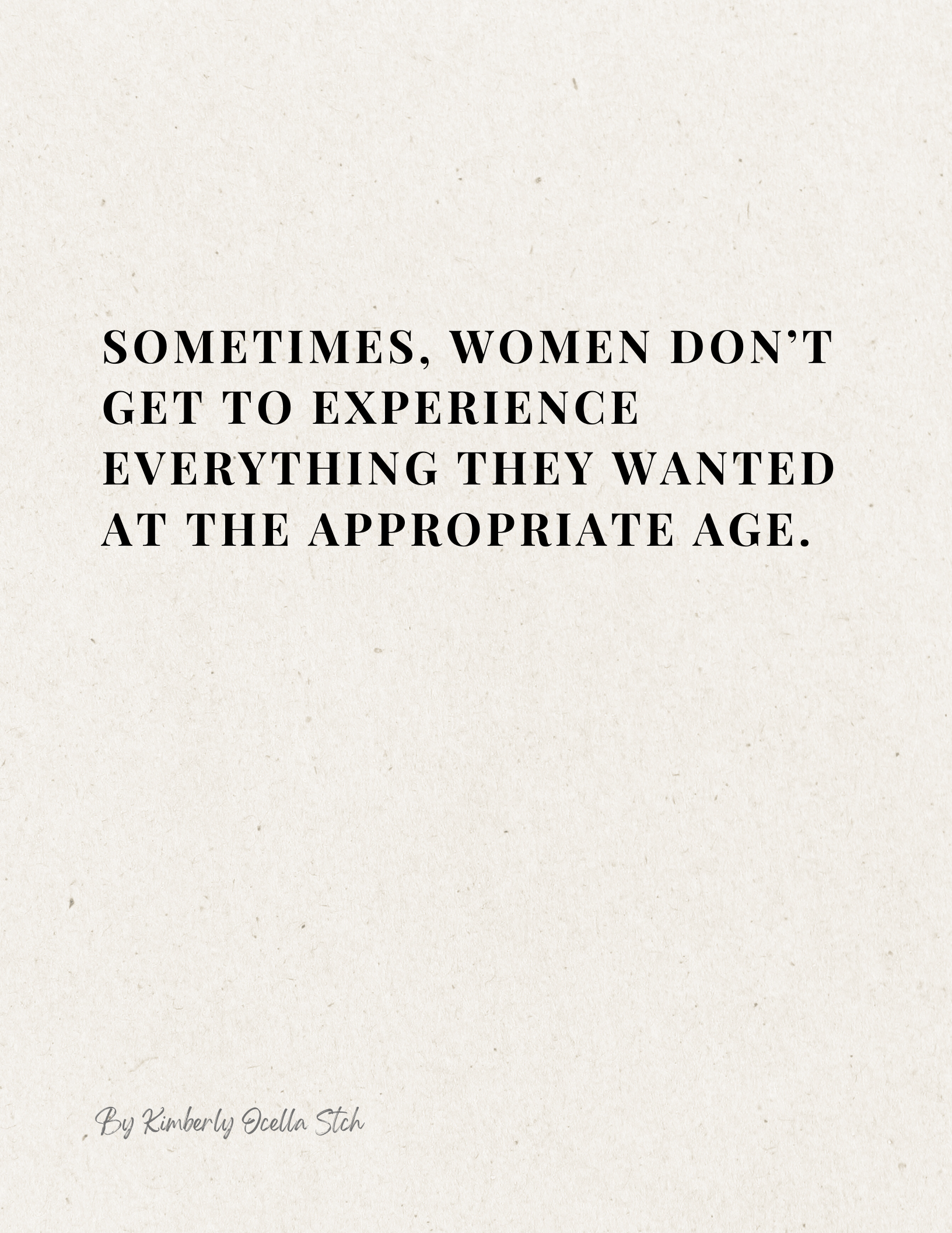 Text: Sometimes, women don’t get to experience everything they wanted at the appropriate age.