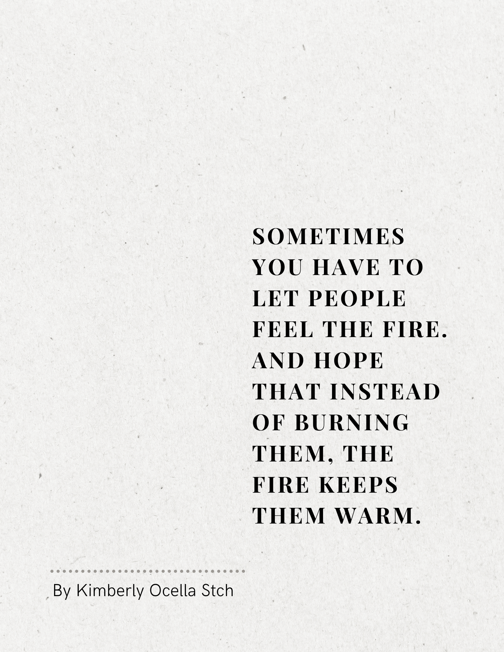 Text: Sometimes you have to let people feel the fire. And hope that instead of burning them, the fire keeps them warm.