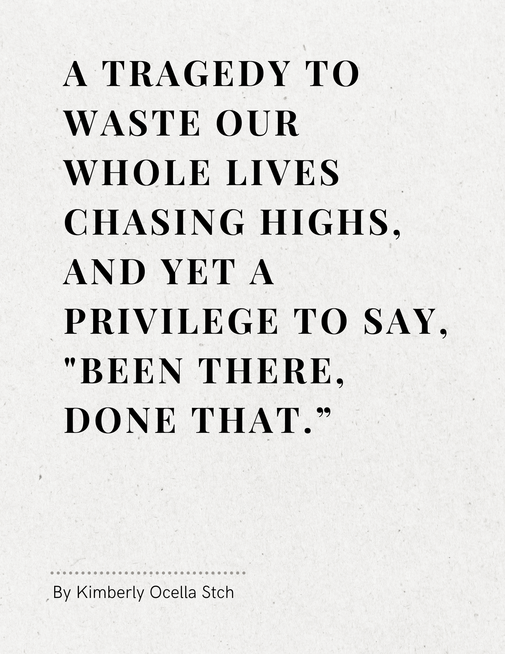 Text: A tragedy to waste our whole lives chasing highs, and yet a privilege to say, "been there, done that.