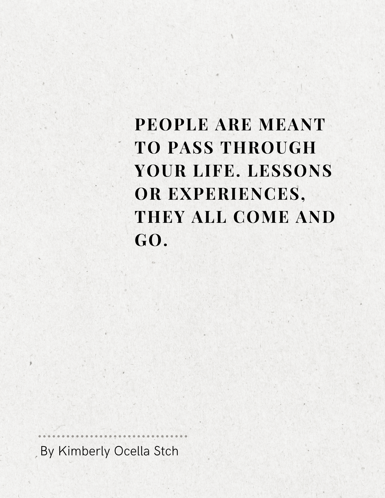 Text: People are meant to pass through your life. Lessons or experiences, they all come and go.