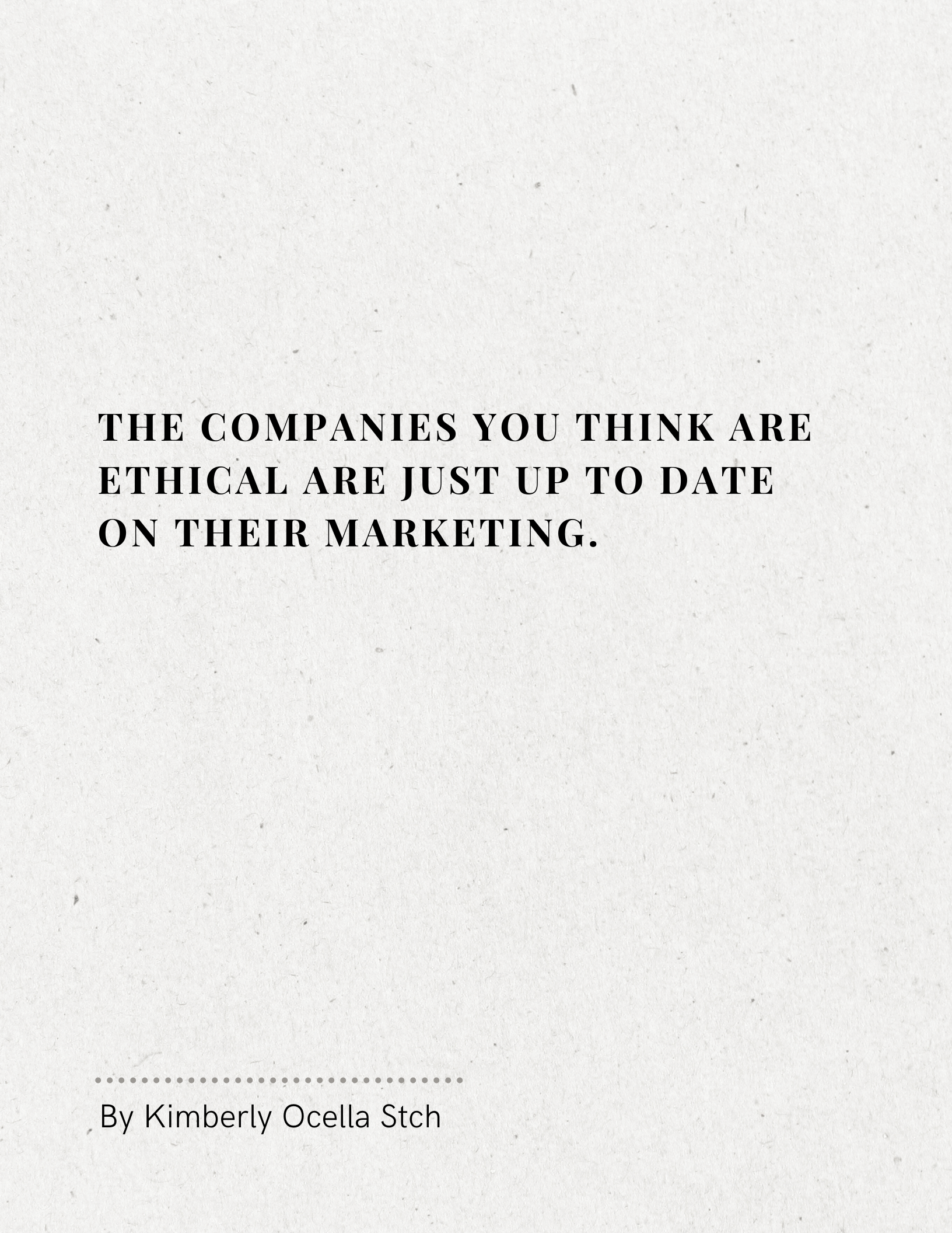 Text: The companies you think are ethical are just up to date on their marketing.