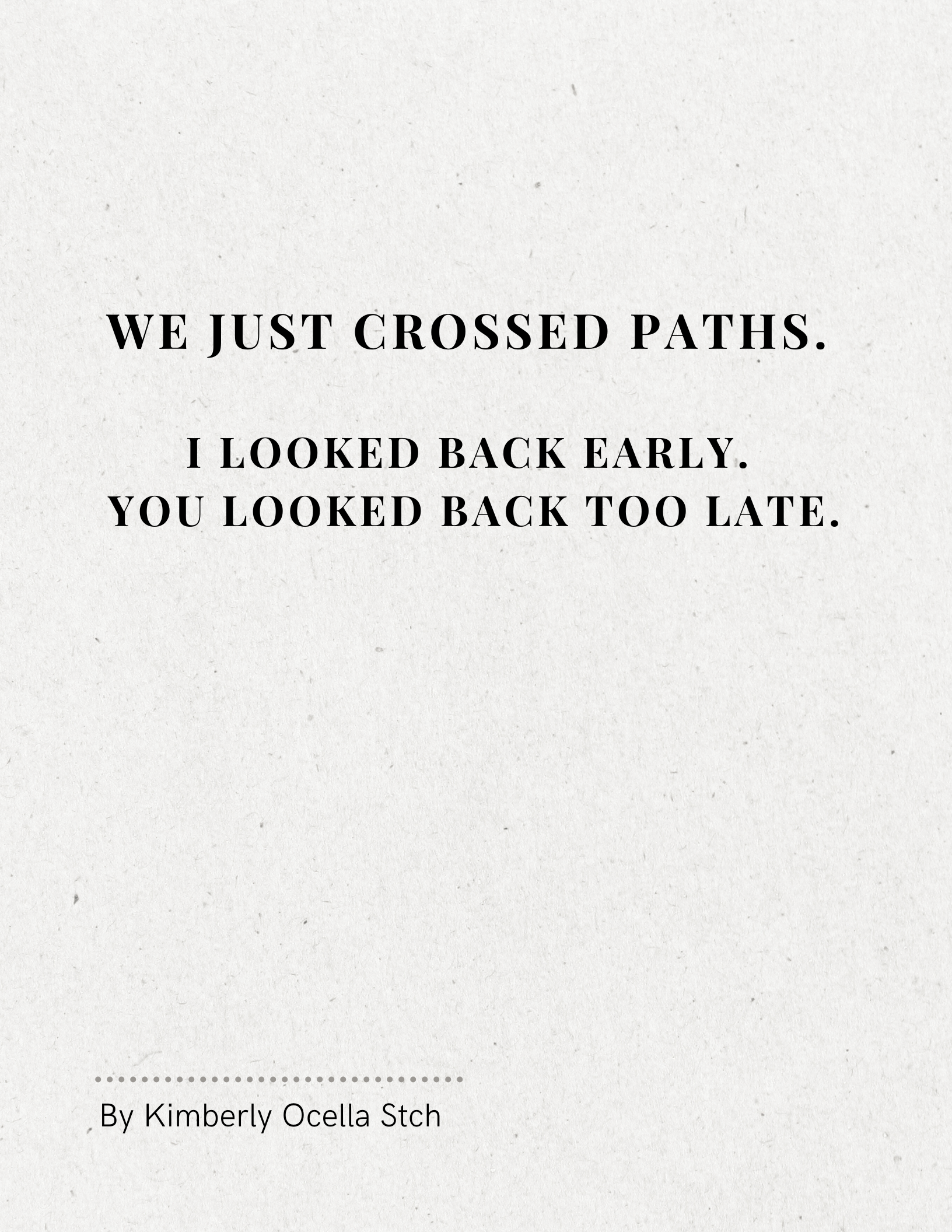 Text: We just crossed paths. I looked back early. You looked back too late
