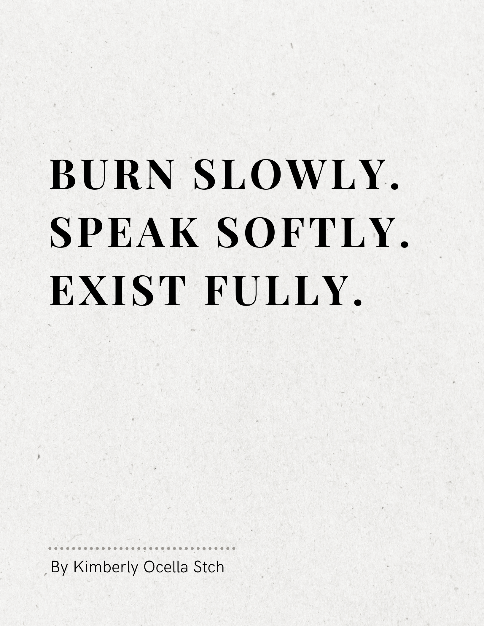 Text: Burn slowly. Speak softly. Exist fully.