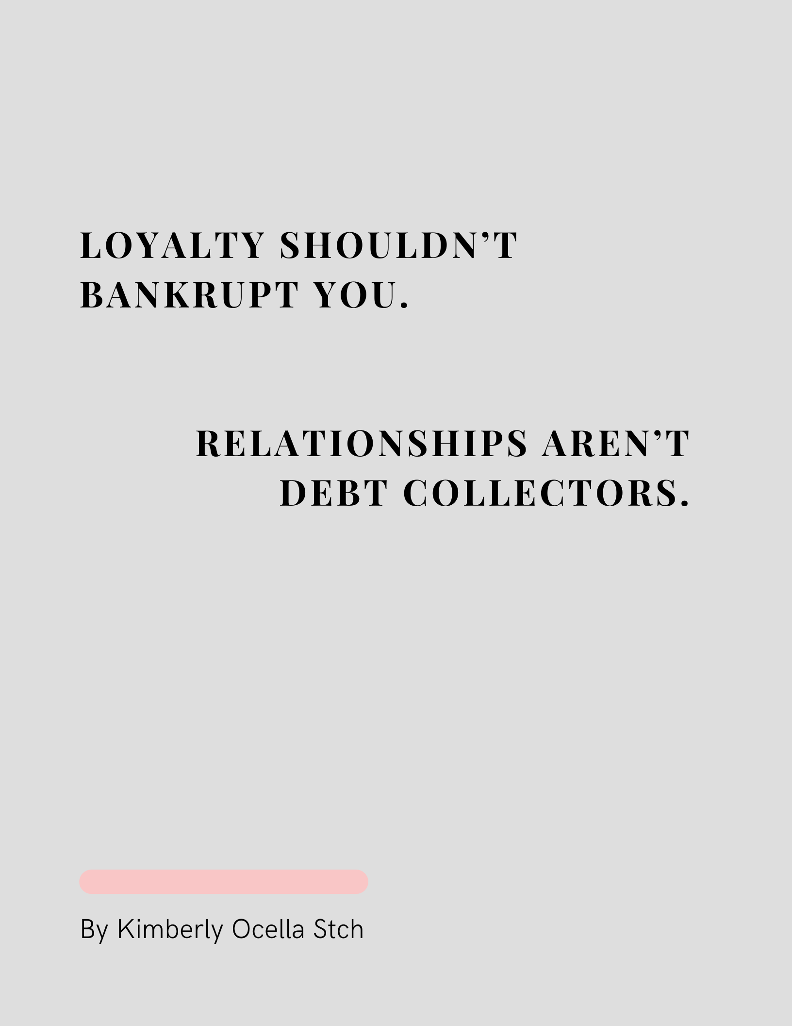 Text: Loyalty shouldn’t bankrupt you. Relationships aren’t debt collectors