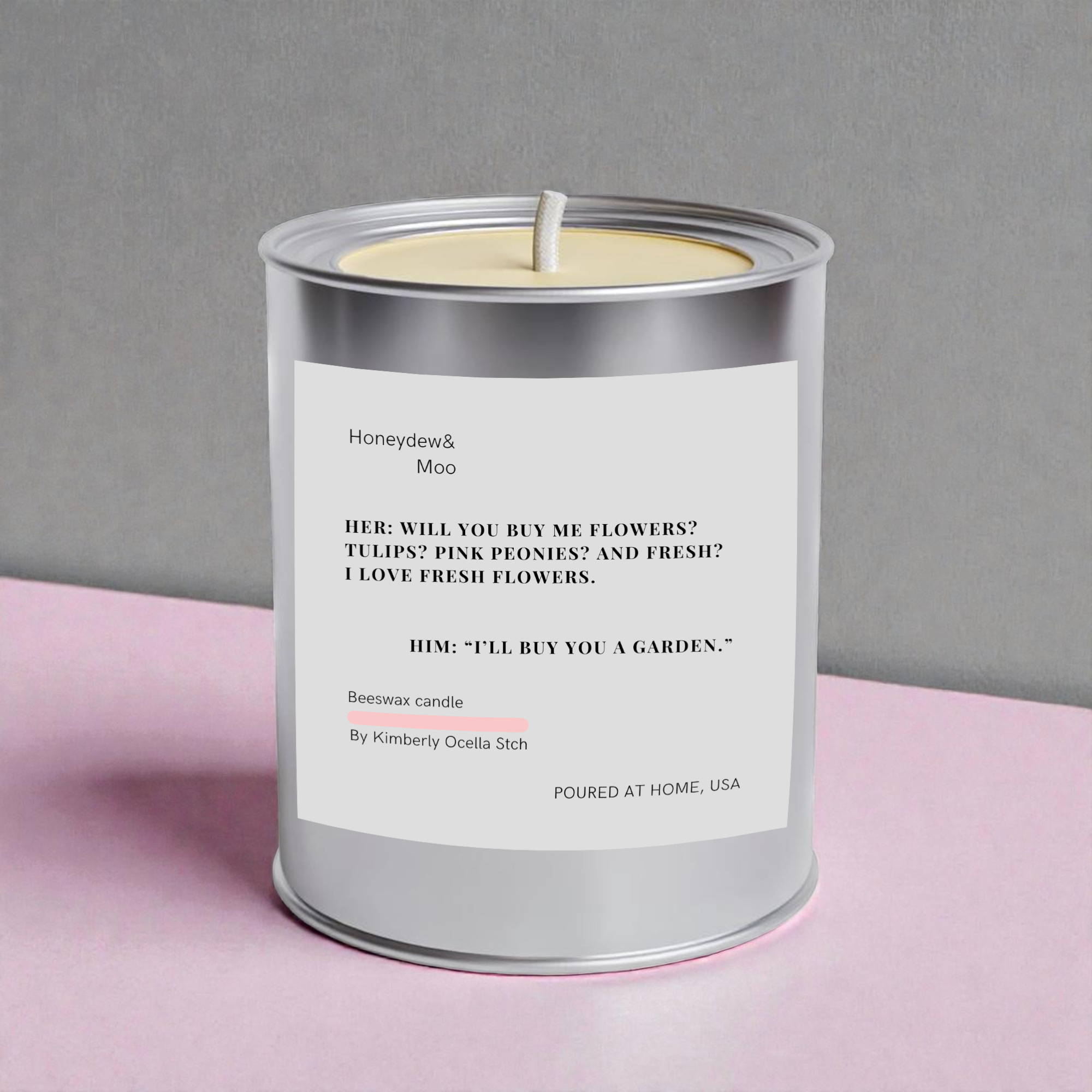 Text: Her: Will you buy me flowers? Tulips? Pink peonies? And fresh? I love fresh flowers. Him: “I’ll buy you a garden.”